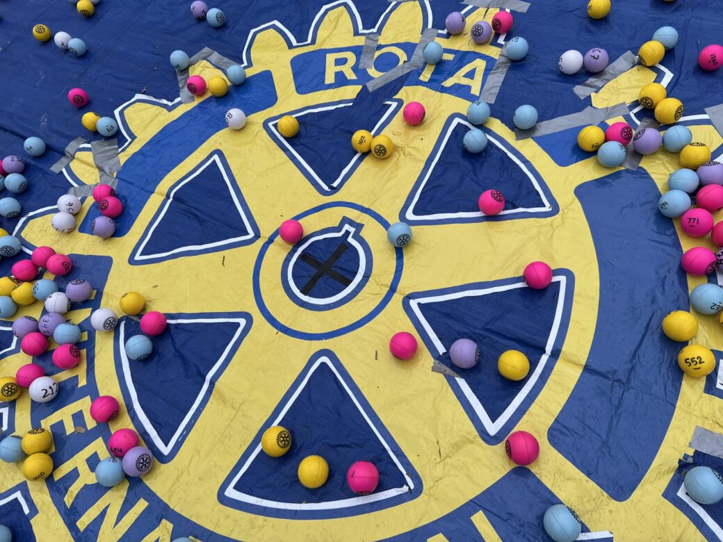The closest ball to the pin in the center of the Rotary target wins the Grand Prize, and the Second closest ball wins the Second Prize! It’s fun to watch and even more fun if you win!